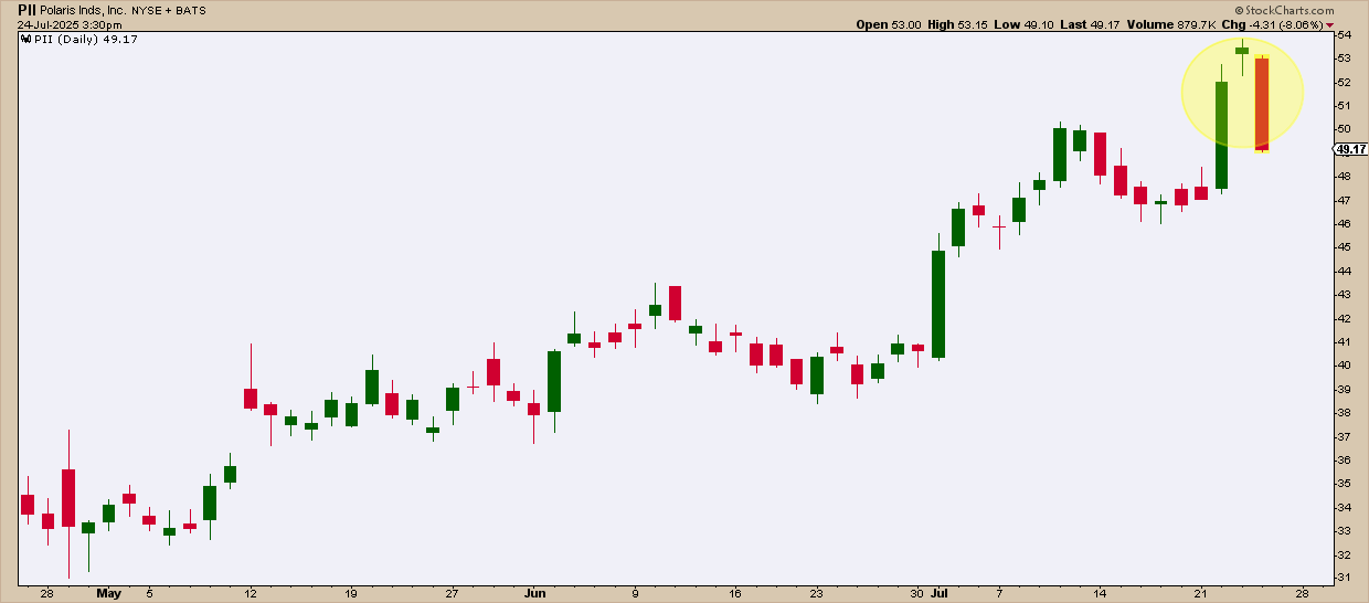 FIGURE 4. DAILY CHART OF POLARIS. This evening star candlestick pattern is a bearish pattern signaling a potential reversal to the downside.